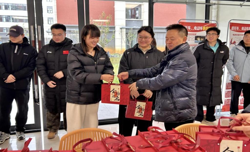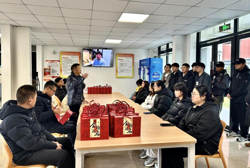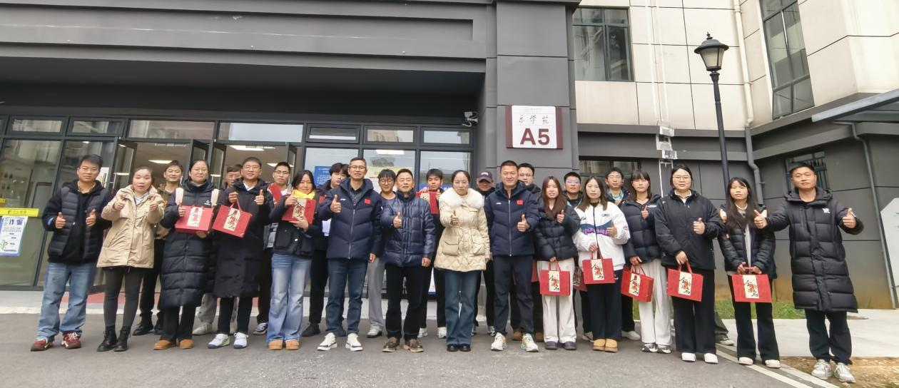 党委书记姚思勤、院长周利、党委副书记陈伟及全体辅导员一行,走进A区学生宿舍乐学苑一楼,亲切看望并慰问了正在紧张备战的考研学生,为他们送去了满载祝福与关怀的备考助力礼。