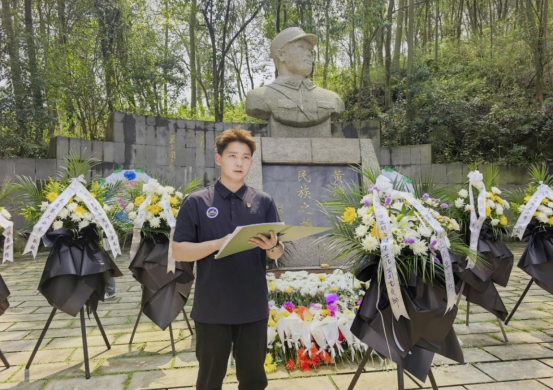 学生第一党支部与分团委在贵阳市花溪公园戴安澜将军墓前联合举行清明祭扫活动,深切缅怀抗日英烈,厚植家国情怀。活动由支部书记吁莉主持,全体党员、团员代表参加。