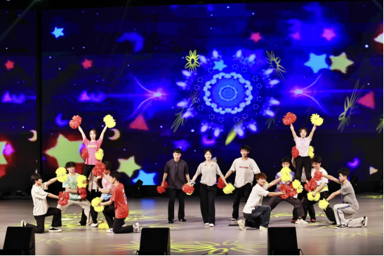 第三篇章“逐梦山海,毕业生赞歌”以离别与奋进为核心,歌曲《凤凰花开的路口》深刻表达了毕业生们对校园、对师长、对同窗的不舍,京剧《武家坡》让现场师生感受到了传统文化与青春活力的完美融合,情景舞蹈剧《那间训练馆》还原了毕业生们在训练馆里的真实场景,见证了他们的成长与蜕变。“夹粮运球”游戏规则借鉴了传统趣味运动的形式,大家相互配合,既有紧张刺激的比拼,也有欢声笑语的陪伴。