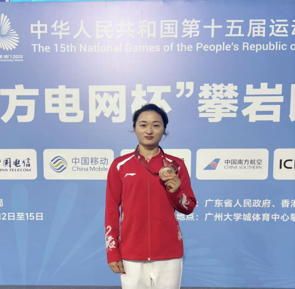 图1 张少琴获得第十五届全运会女子速度攀岩铜牌